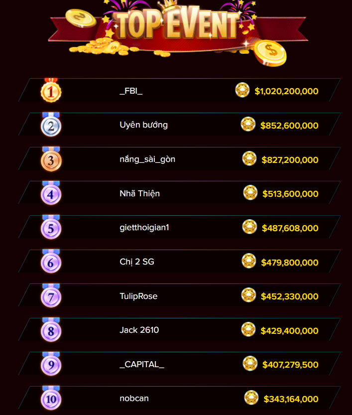 📊 Bảng Top sự kiện hiện tại đang chờ đón những cao thủ xuất sắc nhất!