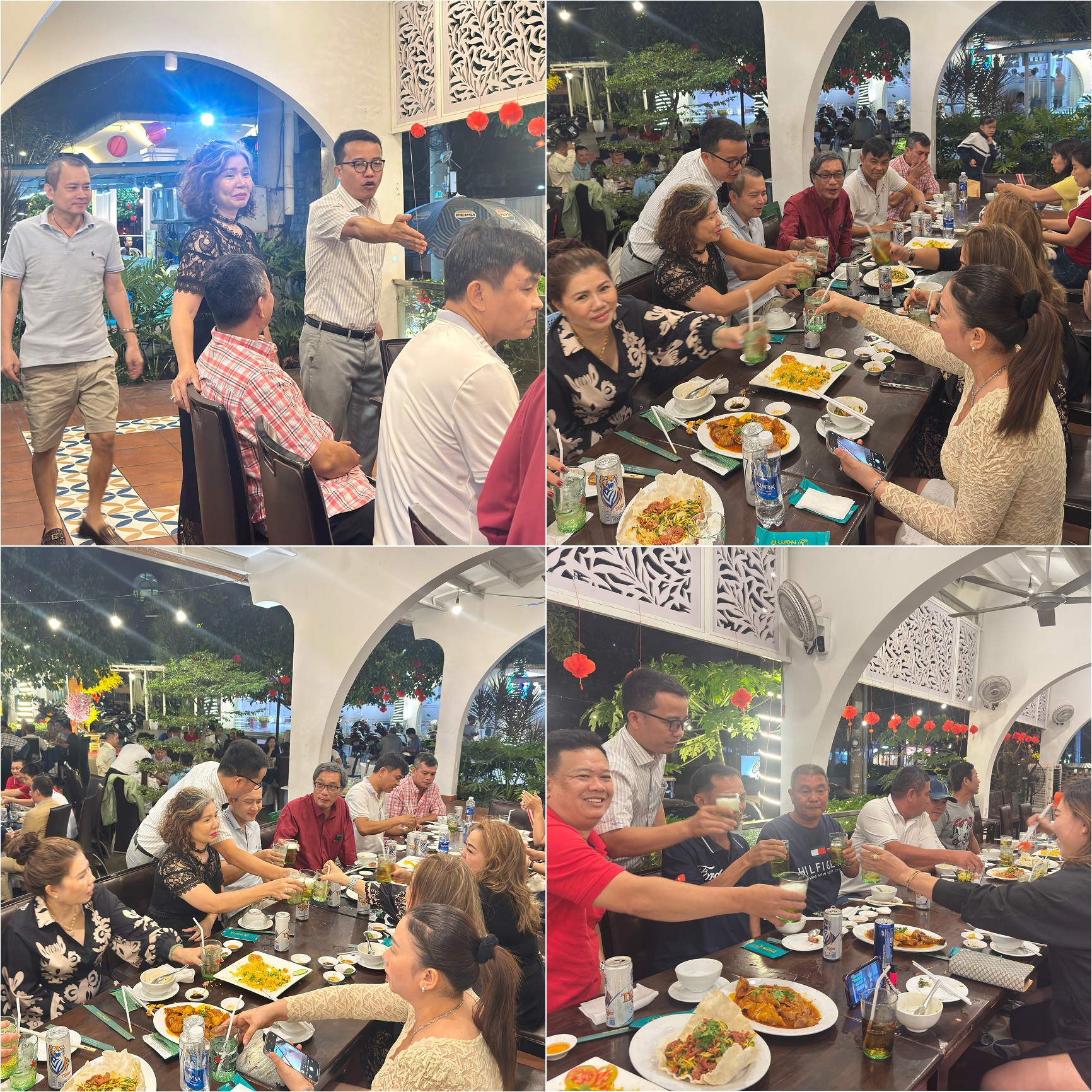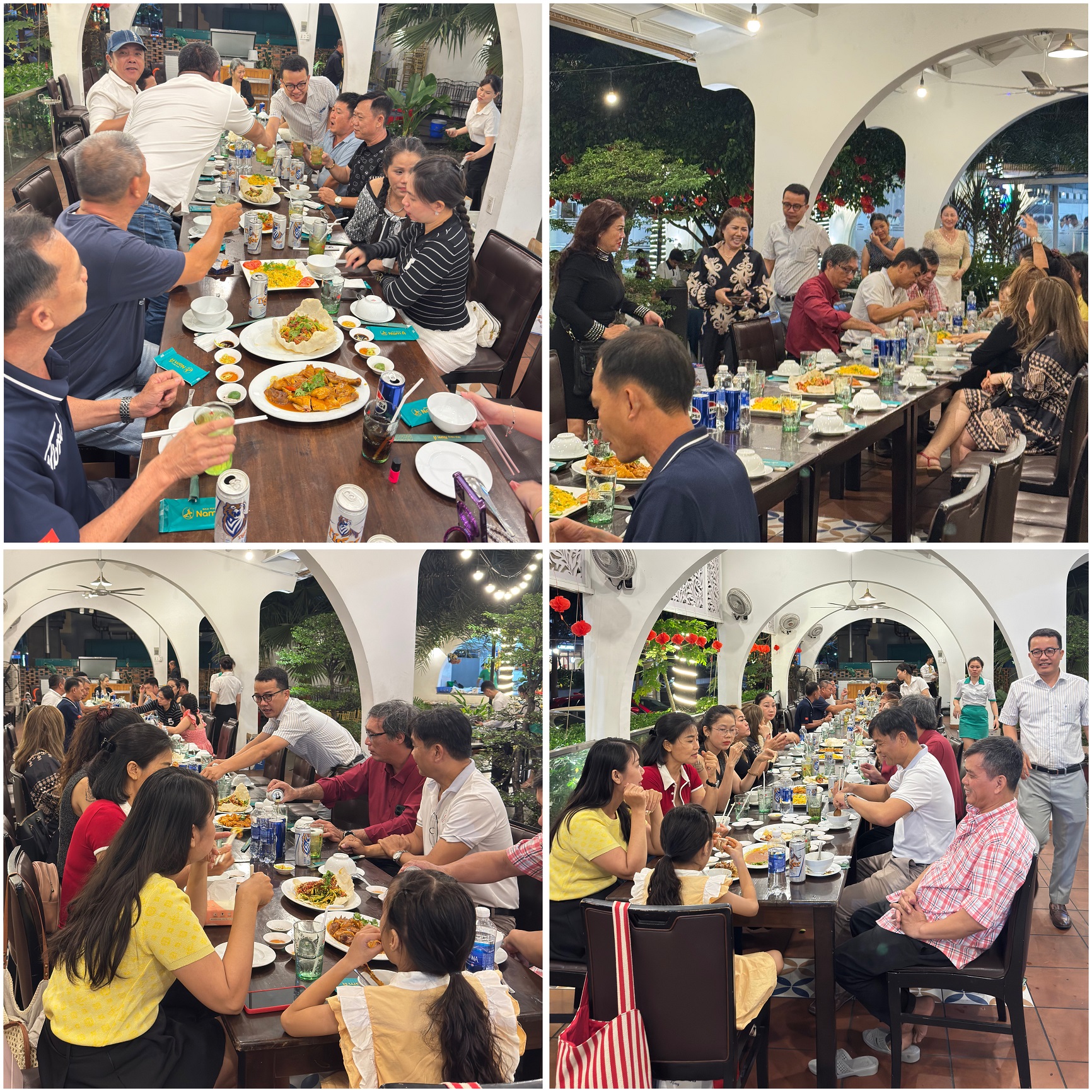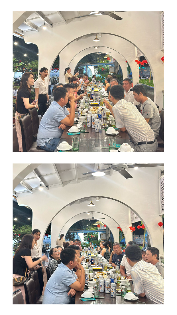 Mọi người cùng ăn uống vui vẻ trong không khí thân tình, cởi mở và đầy tiếng cười, góp phần tạo nên những khoảnh khắc gần gũi và đáng nhớ cho buổi tiệc.